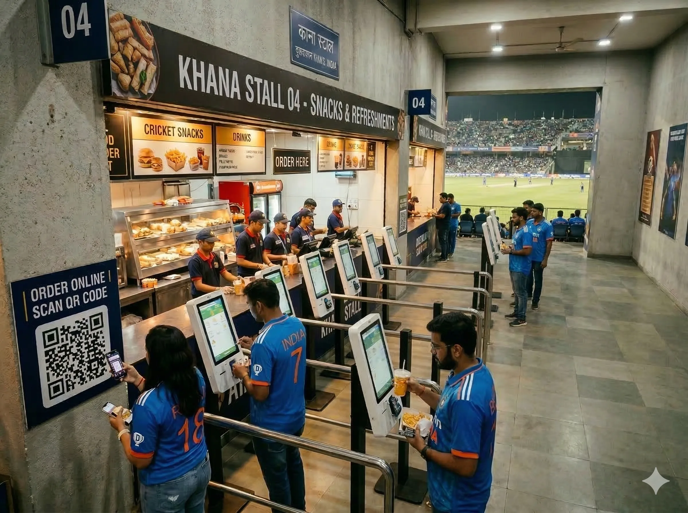 Digital KOT routing and cashless payments allow vendors to process 3x more orders during the critical 15-minute half-time window.