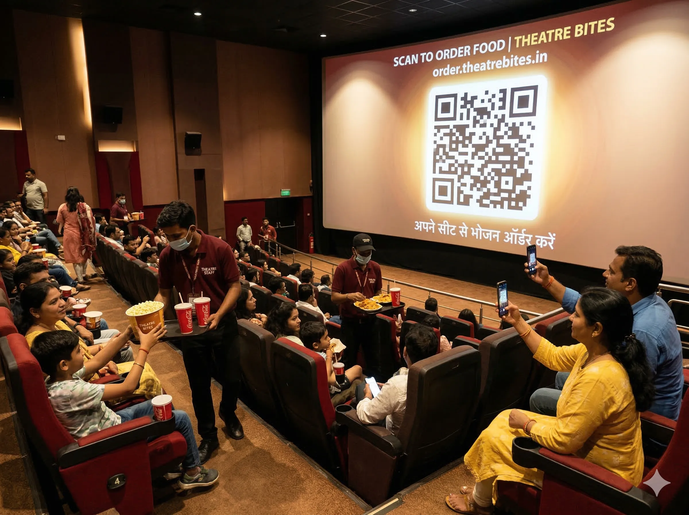 Customers scan a QR code mapped specifically to "Screen 3, Seat G12." Popcorn is delivered silently and perfectly to their laps mid-movie.